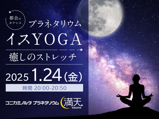 コニカミノルタプラネタリウム満天NAGOYA(名古屋/運営:コニカミノルタプラネタリウム株式会社/代表取締役社長:本由美子)では、星空を眺めながらヨガ体験ができる『プラネタリウムイスYOGA ~癒しのストレッチ~』を2025年1月24日(金) に開催します。