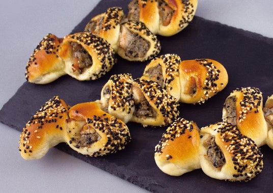 黒胡麻とれんこんを使用したフィリングとスモークチキンを包み焼き上げました。たっぷりの黒胡麻とスモークの香りが香ばしく、食欲そそる一品です。