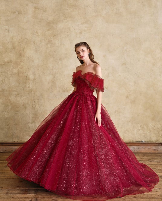 ひとつひとつ丁寧に縫い付けられたクリスタルビーズやスパンコール、とろけるような光沢が魅力のシルク、計算されつくしたフラワーモチーフなどその素材のすべてを厳選し、デザイナーが一点一点丁寧に手作業で制作しています。