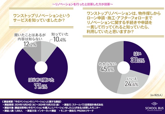 そこで今回、スクールバス空間設計株式会社(https://www.school-bus.jp/onestop/)は、中古マンションを購入しリノベーションをしたことがある方を対象に、「中古マンションのリノベーション」に関する調査を実施しました。