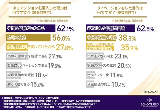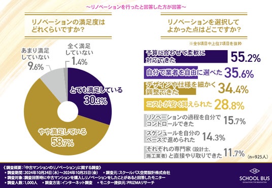 今回、「中古マンションのリノベーション」に関する調査を実施したスクールバス空間設計株式会社(https://www.school-bus.jp/)は、「快適な暮らしをデザインする」をコンセプトにリノベーションを行っています。
