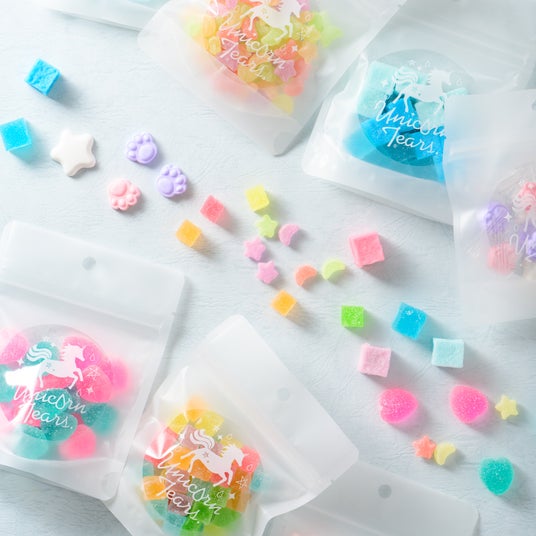 ユニコーンティアーズは、ゆめかわいいものが大好きな乙女のために、2018年に誕生したお菓子のブランドです。発売当初より「どこで買えるかひみつ」をコンセプトに、徹底して大人ではなく15歳の乙女のためにお菓子づくりや商品企画に取組んで参りました。大手企業の菓子メーカーとは違い、機械では生産できない、「手作り」、「手作業」だからこそできる繊細で美しい宝石のような見た目のお菓子にこだわっています。