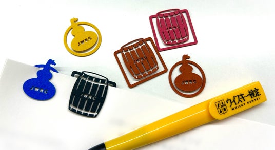 全て紙で出来たエコロジーなクリップ『JWRCオリジナルエコクリップ』は、ウイスキー樽デザインとポットスチルデザインの2種類がラインナップ。