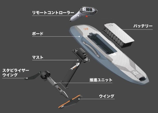 バッテリーや推進ユニット、マストやウィングなどを単品で揃えて組み合わせることも可能です。