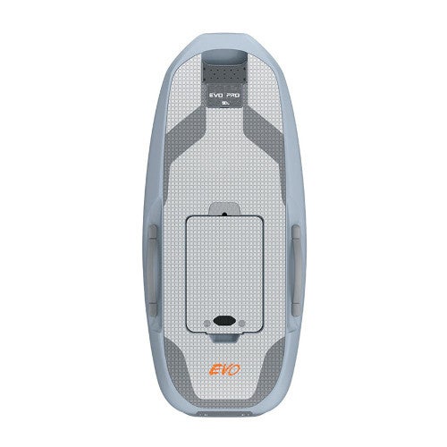 Flyer EVO Pro の最大速度は22km/hで最大駆動時間は100分。免許不要でパワフルな1500Wのモーターを搭載し、誰でも手軽に思う存分楽しむことができます。ボードのノーズにはハンドルや拡張ドック、フレームが装備されています。ハンドルはうつ伏せ姿勢で移動する際の快適性が向上し、拡張ドックには様々なアクセサリーを取り付けることができます。