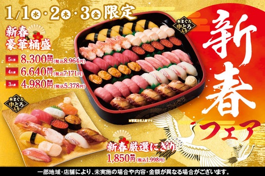 KOZOホールディングス株式会社の子会社である株式会社小僧寿しは、持ち帰りすし店「小僧寿し」にて、2025年1月1日(元日・水)~3日(金)の期間限定で『新春フェア』を開催します。大好評♪ご予約承り中です!