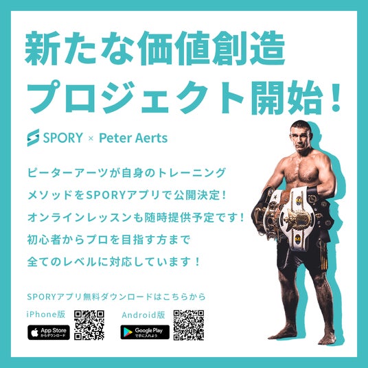 トップアスリートの極意をスマホで学べる『SPORY』を提供する株式会社スポリー(代表取締役社長:丸山和也、以下 スポリー)は、キックボクシング界のレジェンドであるピーター・アーツとマネジメント契約を締結しました。