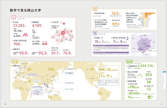 国立大学法人岡山大学(本部:岡山市北区、学長:那須保友)では、2019年度から「統合報告書」を発行しています。「統合報告書」とは、財務情報と非財務情報を組み合わせて、ビジョンと有機的に統合(Integrated)することで、組織(国立大学法人岡山大学)がどのように長期にわたり価値を創造するかを説明する年次報告書です。