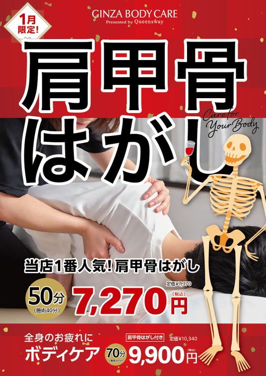 大人気のボディケアメニューとして、「肩甲骨はがし」のお得なコースを提供いたします。