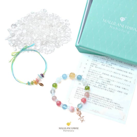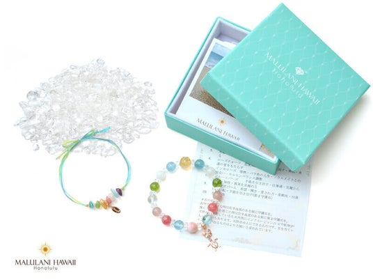 ハワイ発祥の天然石アクセサリーブランド「マルラニハワイ」の創業当初より愛され続ける「バースデイオーダーブレスレット」は、生年月日より守護石を算出しお願い事の石と組み合わせて作る、世界にひとつのオーダーメイド。