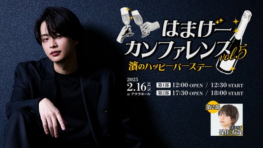 バルス株式会社(東京都中央区、代表取締役:林 範和)は、声優・アーティストとして幅広く活躍する濱健人さんのバースデーイベント「はまげーカンファレンス Vol.5 ~濱のハッピーバースデー」を2025年2月16日(日)、せいせきアウラホールにて開催いたします。
