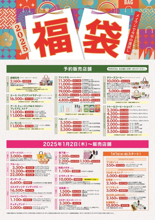 ※エキマチの福袋対象店は、1/1(水・祝)~販売いたします。