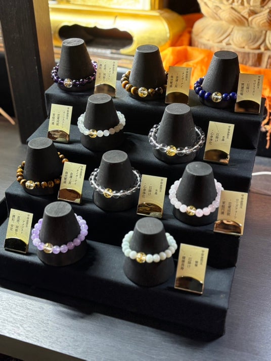 宇宙を旅した金箔と、厳選された天然石を組み合わせた世界に一つだけの腕輪御守。パワーストーンが持つ力に宇宙エネルギーと善光寺釈迦堂での祈祷が加わり、身につける方の願いを力強くサポートします。