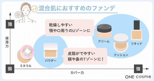 混合肌さんは、部位ごとにファンデーションを使い分けるのがおすすめです。