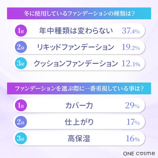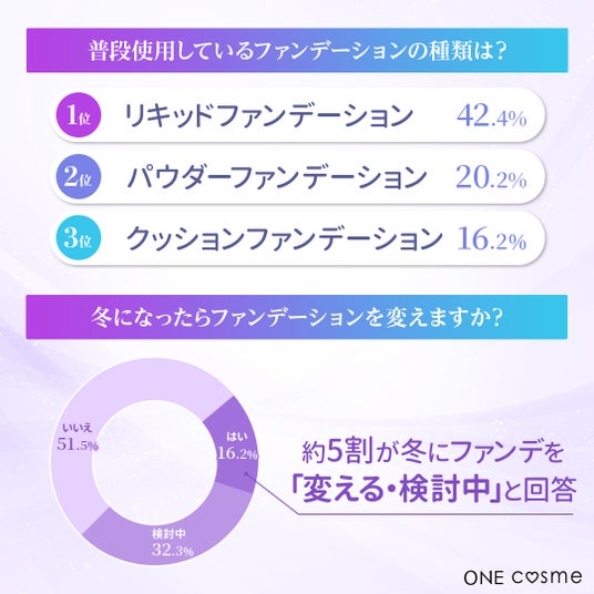 美容コスメ領域を中心に、さまざまな領域特化型メディアプラットフォームを展開する株式会社FoR(本社:東京都渋谷区、代表取締役CEO:高橋知暉)が運営する、゛自分をもっと好き になるコスメスキンケアプラットフォーム“『ONEcosme』が、20代以上の男女100名を対象に「冬のファンデーション」について調査しました。