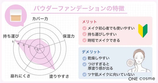 反対に、水分や油分が少ないパウダーファンデーションは肌が乾燥しやすいので注意が必要です。