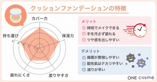 油分が多く、肌へぴたっと密着するため、カバー力も高め。ただし、ニキビが気になる人や肌への負担を減らしたい人は注意しましょう。