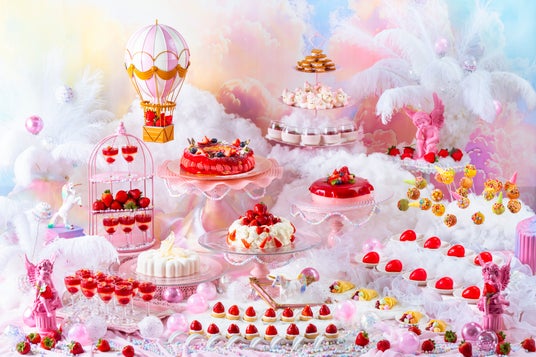 2025年1月25日(土)から5月12日(月)の土日・月曜・祝日限定で開催予定の「ストロベリービュッフェ~天使からの贈り物~」にて、「シャンドン ロゼ」をグラスでお楽しみいただけます。幻想的な天空のお城をイメージした空間で、12種類のスイーツや8種類のセイボリーとのペアリングをご堪能ください。