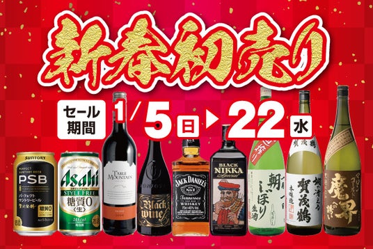 全国に186店舗で酒の専門店をチェーン展開する株式会社リカーマウンテンは、2025年1月5日(日)より、深夜営業店舗などの一部を除く119店舗で『新春初売りセール』を開催いたします。