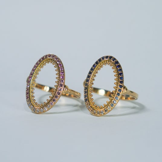 グラデーションカラーを採用したサファイアが指先を美しく彩ります。