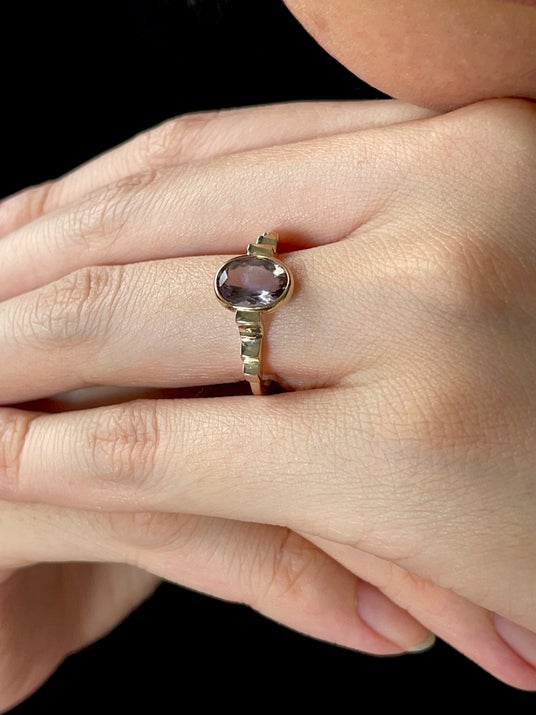 宝石を支えるアームにユニークさをプラスした1点物の指輪です。