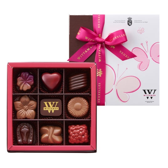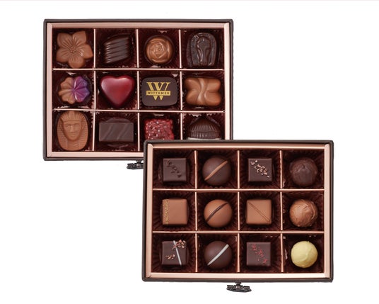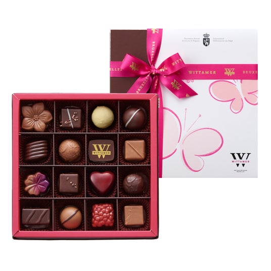 多彩な味わいのプラリネショコラに、ガナッシュに豊かな味わいを楽しめるトリュフとパヴェ ド ショコラを加えた、ヴィタメールのショコラを堪能できる一箱。やさしい甘みとコクのあるホワイトチョコレートガナッシュをとじ込めた「トリュフ・ブラ ン」と「クール・ルージュ」の期間限定ショコラが入った特別な詰め合わせです。16個入と20個入は華やかな蝶のデザインスリーブで、24個入と40個入は高級感のある2段の引き出しタイプのお箱に蝶の限定タグをお付けしてご用意いたします。