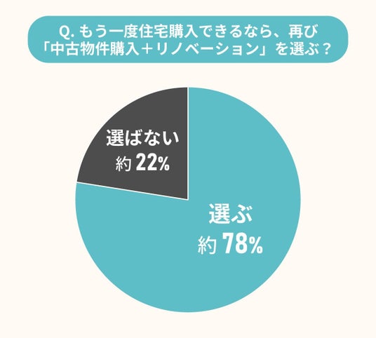 回答者に、もう一度住宅購入できるなら、再び「中古物件購入+リノベーション」を選ぶかどうかを聞いてみました。