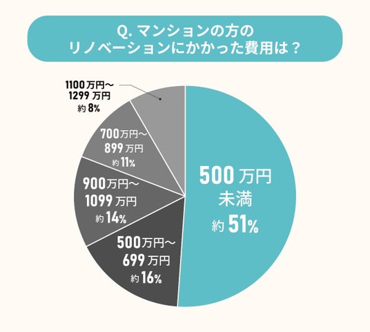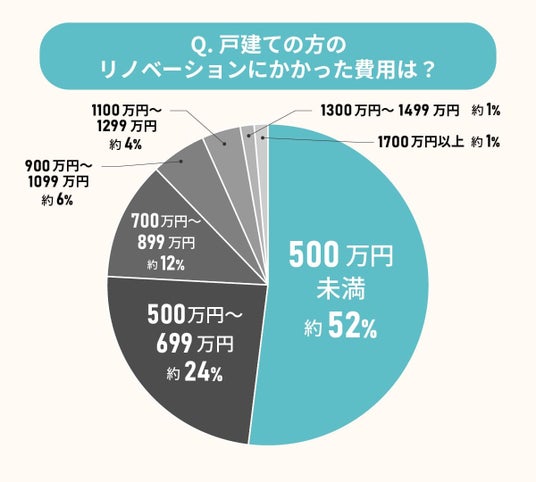 今回は中古住宅のリノベーション経験者を対象に、中古住宅のリノベーションにおける満足度などを聞いてみました。物件種別としてはマンションよりも戸建てのほうが多く、リノベーション費用は500万円未満がボリュームゾーンでした。満足度としては概ね満足している人が多く、コストを抑えながらも理想の設備や間取りに仕上がった、といったコメントが多く見られました。一方で、住んでみて不便に感じたことや、費用面を不満として挙げている人も一定数いました。