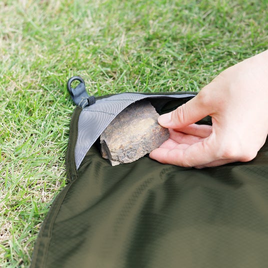 当商品は、バッグに取り付けて持ち運びが可能なサイズ・重さと、丈夫で撥水性のあるナイロン素材のため、様々なアウトドアシーンで使用が可能です。