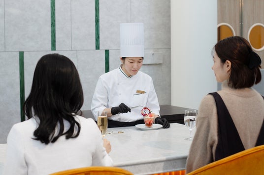 レストラン「アマデウス」 シェフズカウンター2024年3月フルリニューアルし誕生した6席限定シェフズカウンター。アフタヌーンティーやスイーツブッフェでは味わえない、“可愛い”が生み出される瞬間を目にすることができます。