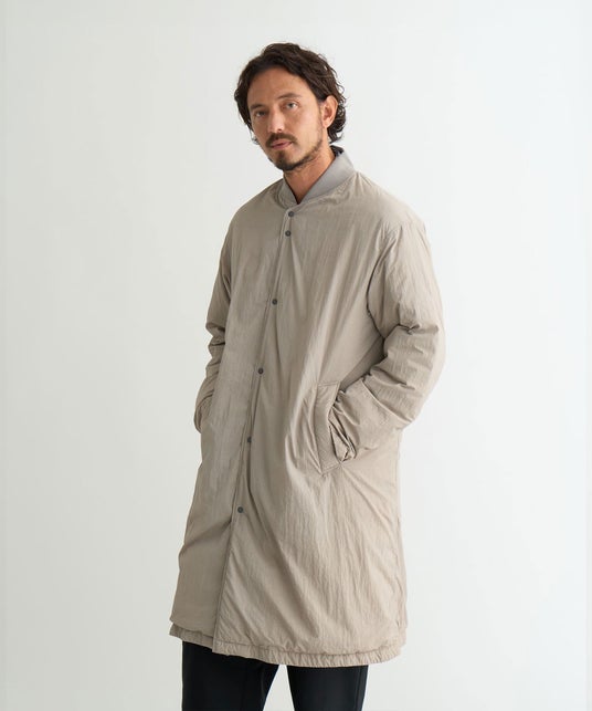 肌寒い春先に軽やかに羽織りたい、ダウン入りのロングコート。
