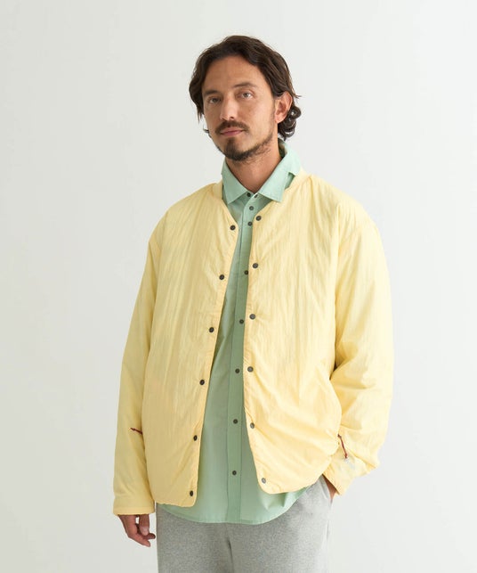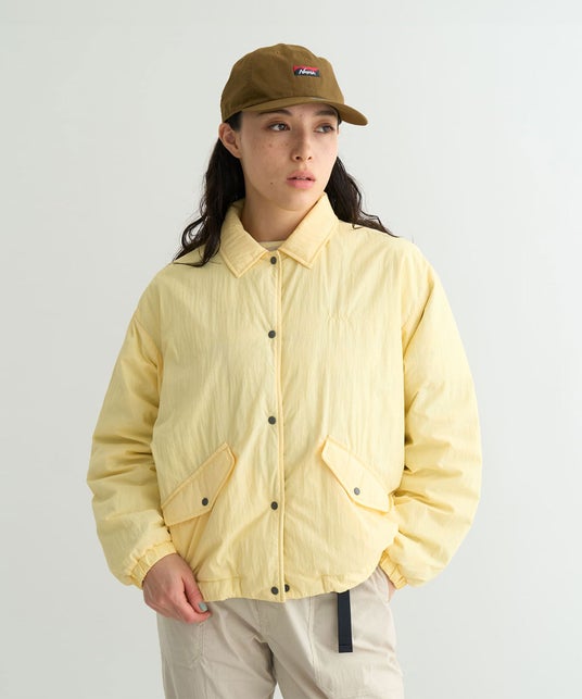 軽量でしなやかなナイロン生地の中にリサイクルダウンを封入したコーチジャケット。