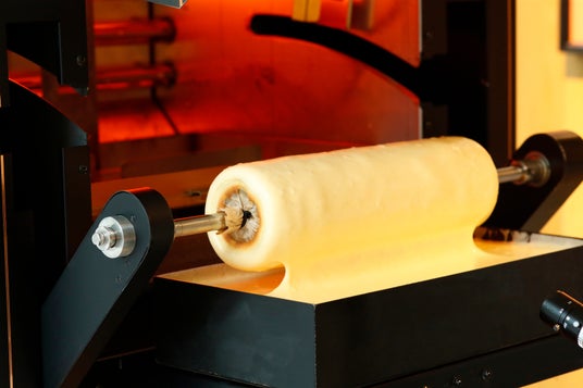 バウムクーヘンの重なり部分の焼きあがりを見られるのも楽しむポイントです。
