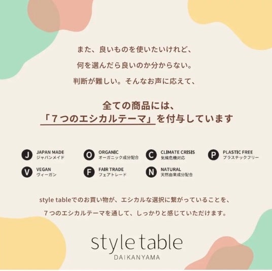 style tableは「エシカル×サスティナブル×ヴィーガン」をテーマに、