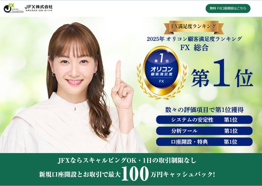 JFX株式会社(本社:東京都中央区、代表取締役社長:小林芳彦、https://www.jfx.co.jp/)は、株式会社oricon MEが実施する「2025年 オリコン顧客満足度(R)調査『FX』(以下、本調査)」において総合第1位を受賞しましたのでお知らせいたします。