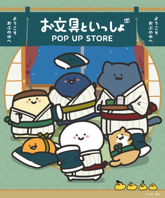 温泉や旅館をテーマにした描き下ろしイラストを使用した新グッズが盛りだくさん!たくさんのご来場をお待ちしております。日頃疲れたこころの中をほんのり満たしてくれる「お文具さん」の期間限定ポップアップストアをお見逃しなく!