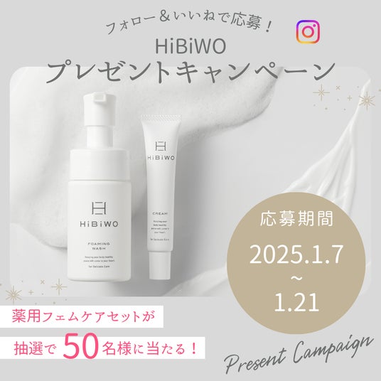 キャンペーン期間中に応募された方の中から抽選で、50名様にHiBiWO薬用デリケートデオウォッシュと薬用ディープモイスト美白クリームをセットでプレゼントいたします。