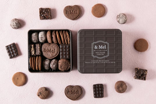 板チョコをイメージしたオリジナルクッキー缶に詰めてお届け