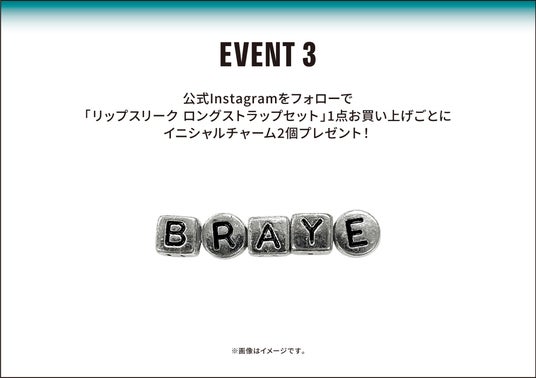 EVENT3 公式Instagramをフォローで「リップスリーク ロングストラップセット」1点お買い上げごとにイニシャルチャーム2個プレゼント!