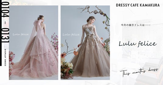 フォロワー数243万人を超えるSNSアカウント「PLACOLE & DRESSY」がプロデュースする「DRESSY CAFE」-きらめく魔法にかかる空間- は、日常で気軽に利用できる「煌めく魔法の場所」という新しい選択肢を増やしたい。ウェディングドレスは特別な時だけのものではなく、もっと身近に、もっと気軽に、体感できる空間となっています。紅茶やスイーツを楽しんでいただきながら、ウェディングドレスの魔法にかかり癒される空間を演出。すべての女の子へ毎月テーマに合わせたウェディングドレスのディスプレイをお届けいたします。1月は、「Lulu felice (ルルフェリーチェ)」のカラードレスを期間限定で展示いたします。