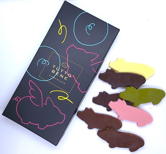 TUTTO BENEはチョコレートで幸せをお届けします!TUTTO BENEは、イタリア語で「すべてうまくいくよ!」、英語でいうと「All OK!」子ブタさんのチョコレートがあなたに幸せを運んで来ますように、そして手にした皆様に幸せが訪れますように。