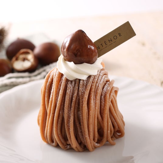 香り高いヨーロッパ産栗のマロンペースト3種類にさらにマロンクリームをブレンドした、濃厚、かつ芳醇なモンブランクリーム。軽い食感のダックワーズ生地にプラリネを合わせたフィヤンティーヌをのせ、刻んだ栗入りクリームとモンブランクリームをしぼりました。ほんのりラム酒が香る大人のモンブランをお届けいたします。