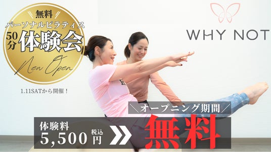 セミパーソナルピラティススタジオWHY NOT 京都烏丸丸太町店では、オープニングを記念して、最大33,900円もお得に入会できるオープニングキャンペーンを実施します!この機会にぜひ新感覚のピラティスを始めてみませんか?