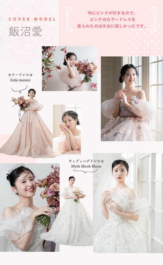 1月号は女優として活躍する飯沼愛さんがKURAUDIA × PLACOLE&DRESSYのウェディングドレス・カラードレスを着て登場。着用したコーディネートのポイントやウェディングドレスの魅力、飯沼愛さんについて DRESSY編集長 武藤みなみよりインタビューさせていただきました。