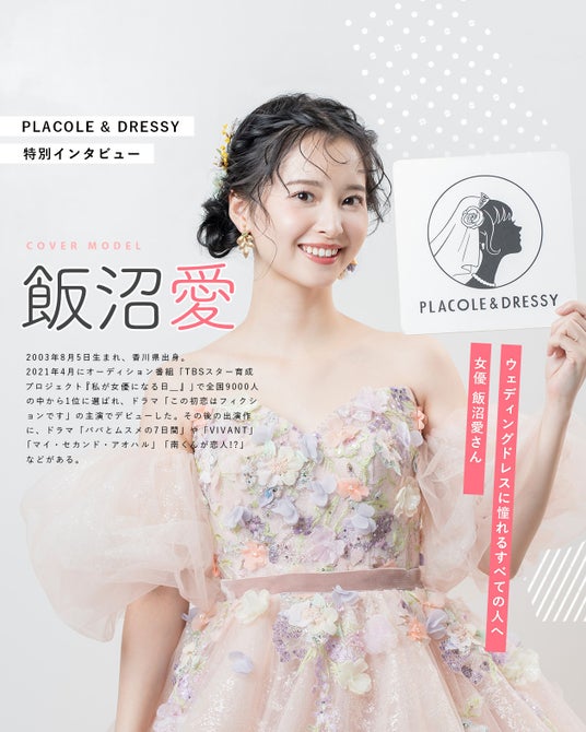 「PLACOLE & DRESSY」ブランドを展開する、冒険社プラコレ(本社:神奈川県鎌倉市、代表取締役CEO:武藤功樹)は、ウェディングドレスをもっと身近に楽しんで欲しいと考え「ウェディングドレスに憧れるすべての人へ」PLACOLE&DRESSYが贈る、特別コンテンツをスタート。2025年1月は女優 飯沼愛さんを迎え、メッセージを頂きました。