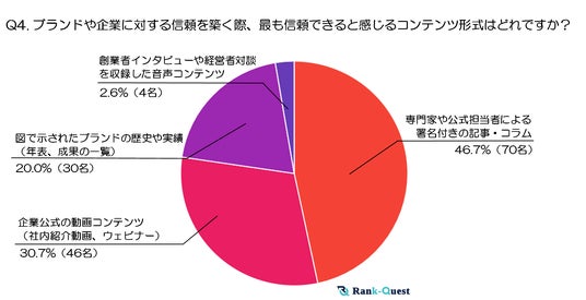 調査結果4.:ブランドや企業に対する信頼を築く際、最も信頼できると感じるコンテンツ形式はどれですか?