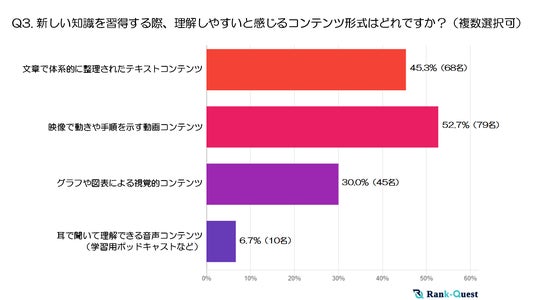 調査結果3.:新しい知識を習得する際、理解しやすいと感じるコンテンツ形式はどれですか?(複数選択可[注])