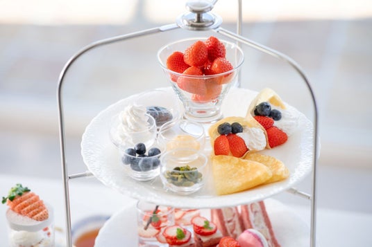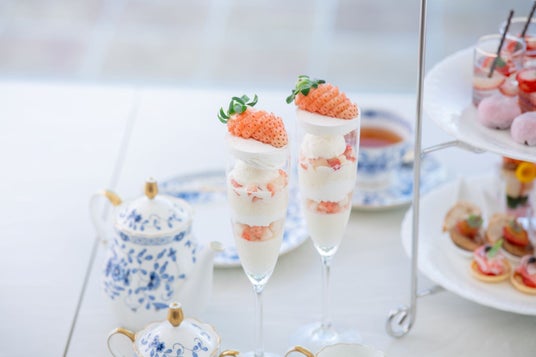 三重県産のいちごなどを使った8種類のスイーツとパフェ、三重県の食材も取り入れた5種類のセイボリーを、12種類の茶葉から選べる高級紅茶ブランド「ロンネフェルト」の紅茶とともに、高級ボーンチャイナNARUMI「ミラノ」のティーセットでお楽しみください。
