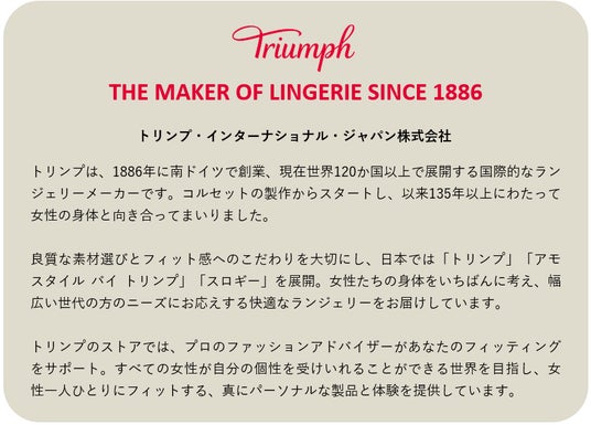 d40640-537-f04bc558f1c8a3f43724e0ba23d77377.pdf 女性たちのありのままに寄り添うメッセージ「It’s Personal ~きれいごとより、私ごと。~」を掲げるトリンプ・インターナショナル・ジャパン株式会社(本社:東京都中央区築地5-6-4、 代表取締役社長:アンドリュー・ブバラ)は、人気シリーズ「恋するブラ(R)」の新デザインを1月8日(水)発売します。