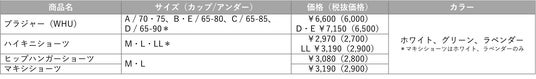 *ブラジャー(WHU)C・D / 85・90、ハイキニショーツ LLは限定店舗での展開です。